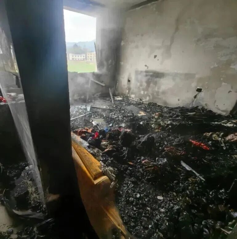 2025年12月23日,江西萍乡一栋民房突发火灾,屋内家具被引燃。当地消防救援人员接警后迅速赶赴现场,及时将火势扑灭,此次火灾未造成人员伤亡。经调查,起火原因系母亲在客厅搞卫生,孩子拿着打火机在房间里玩火,引燃家具发生的火灾。
