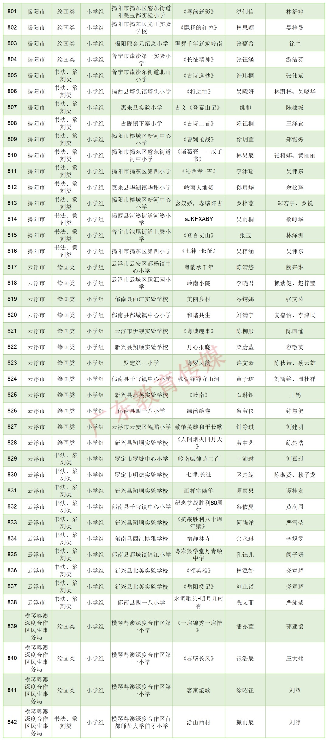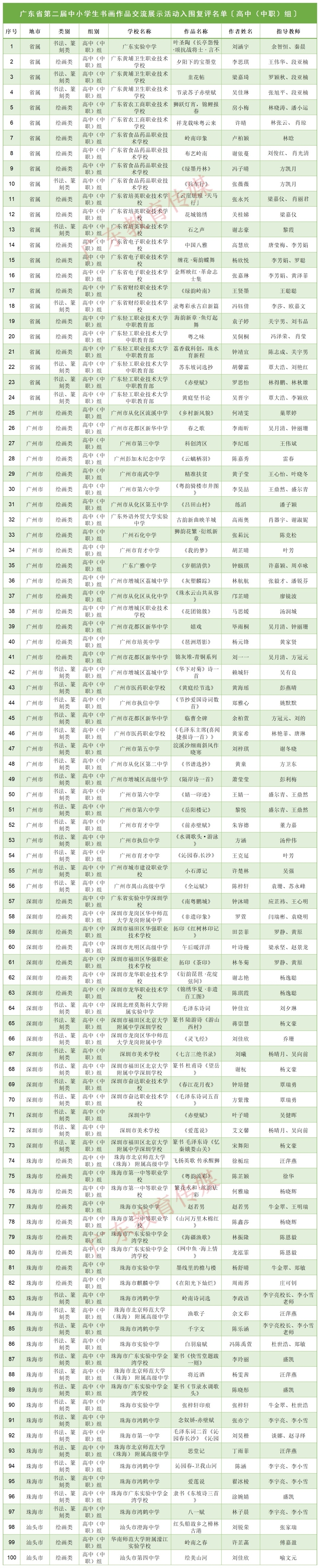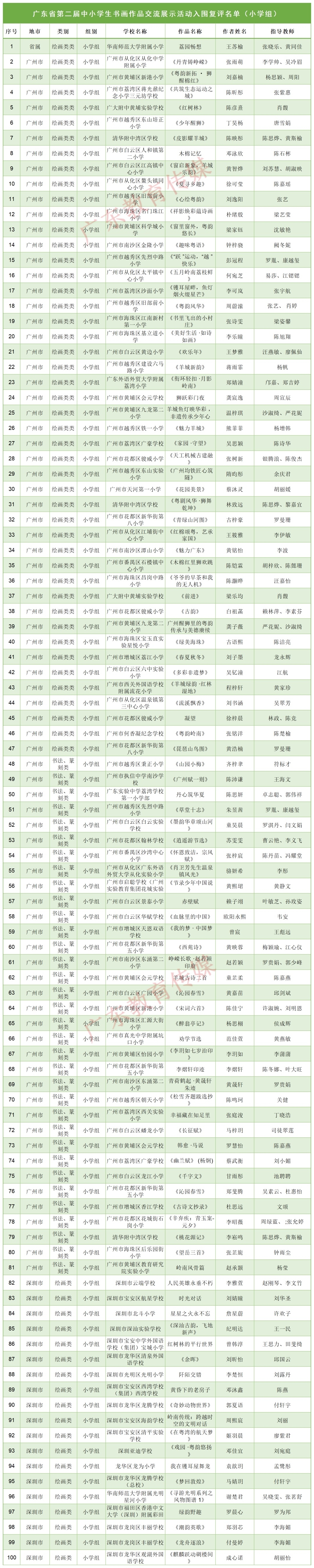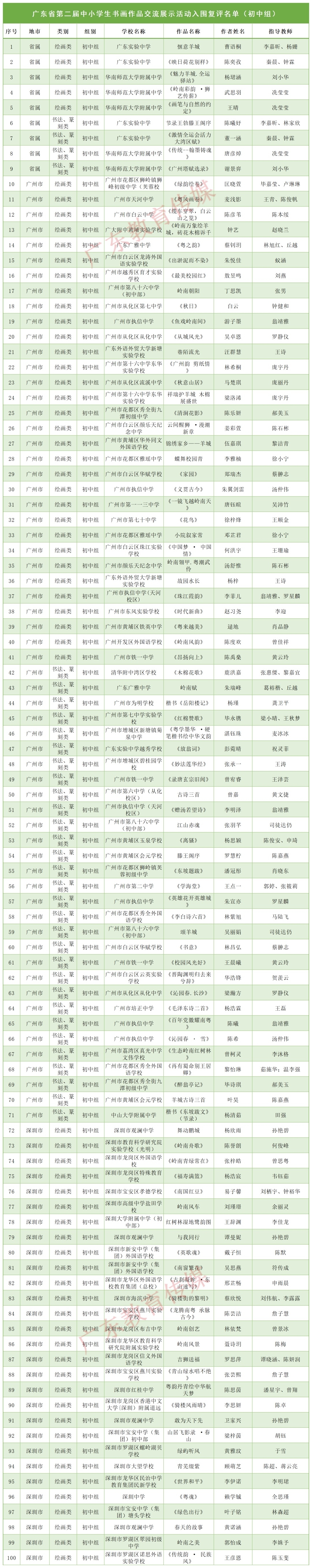 老师、同学们看过来,广东省第二届中小学书画作品交流展示活动入围复评名单公示啦!