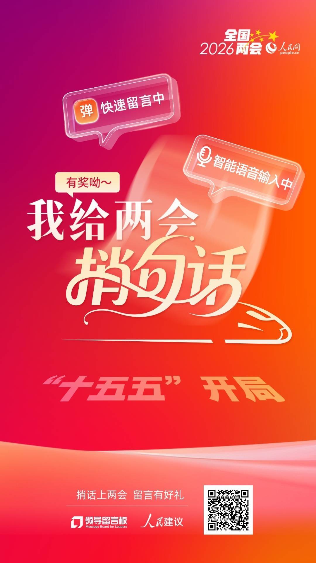 今年是“十五五”开局之年,您对工作、生活有哪些新期盼?对国家发展、民生改善有哪些好建议?无论是产业发展、科技创新,还是教育医疗、育儿养老,都可以通过“捎句话”活动直达两会。您的每一条意见建议,都可能成为代表委员们建言献策的参考,共同绘就国家发展的新蓝图。